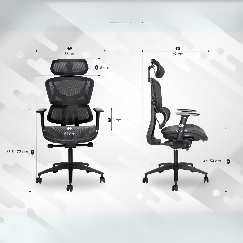 - Dynamic mesh lumbar support: Provides targeted support to the lower back with a dynamic mesh design that conforms precisely to the shape of the lower back, promoting optimal comfort, spinal alignment, and breathability.